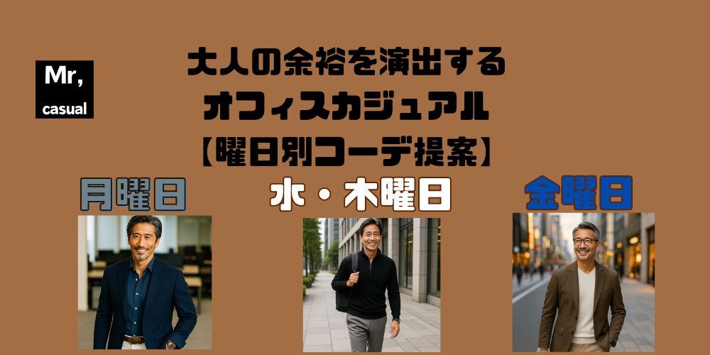 週の中間日にふさわしい、リラックス感と品格を兼ね備えたコーデを完成させることができる、50代メンズ必携のアイテムです。
