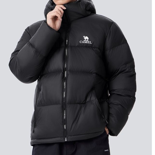 シックなブラックカラーと上質な素材使いが特徴的な防寒ダウンジャケットです。
