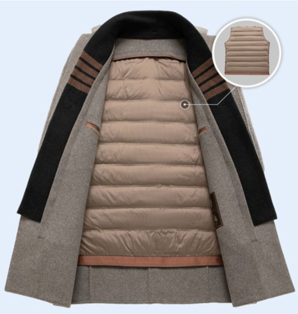 インナーの中綿が取り外し可能で、季節に応じた着こなしが楽しめる二層構造