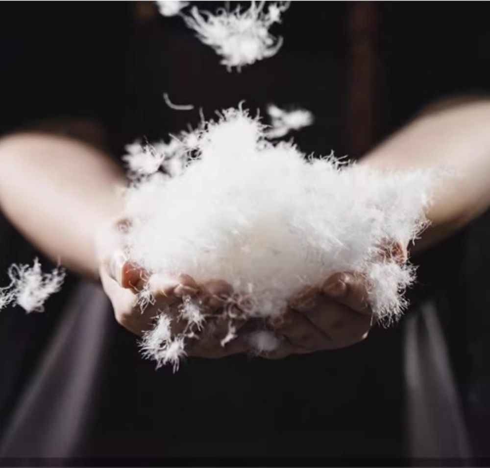 保温性に優れた上質な白鴨ダウンを贅沢に使用しており、軽量でありながら暖かさを実現