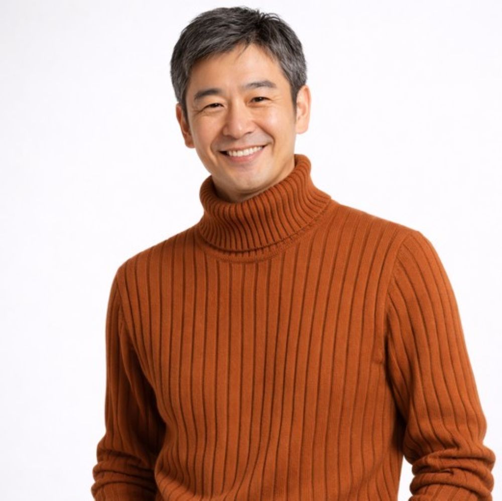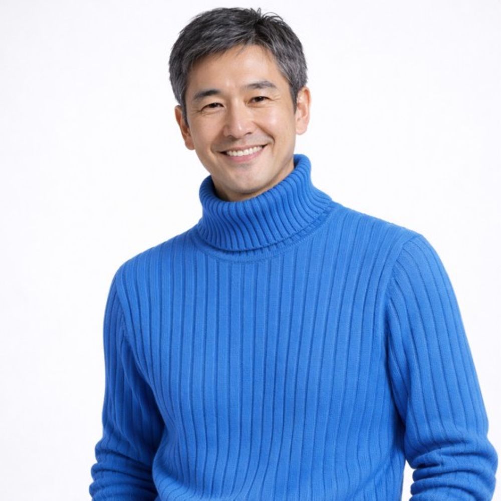 50代メンズファッションに最適な上質な縦畝編みのタートルネックニットです。