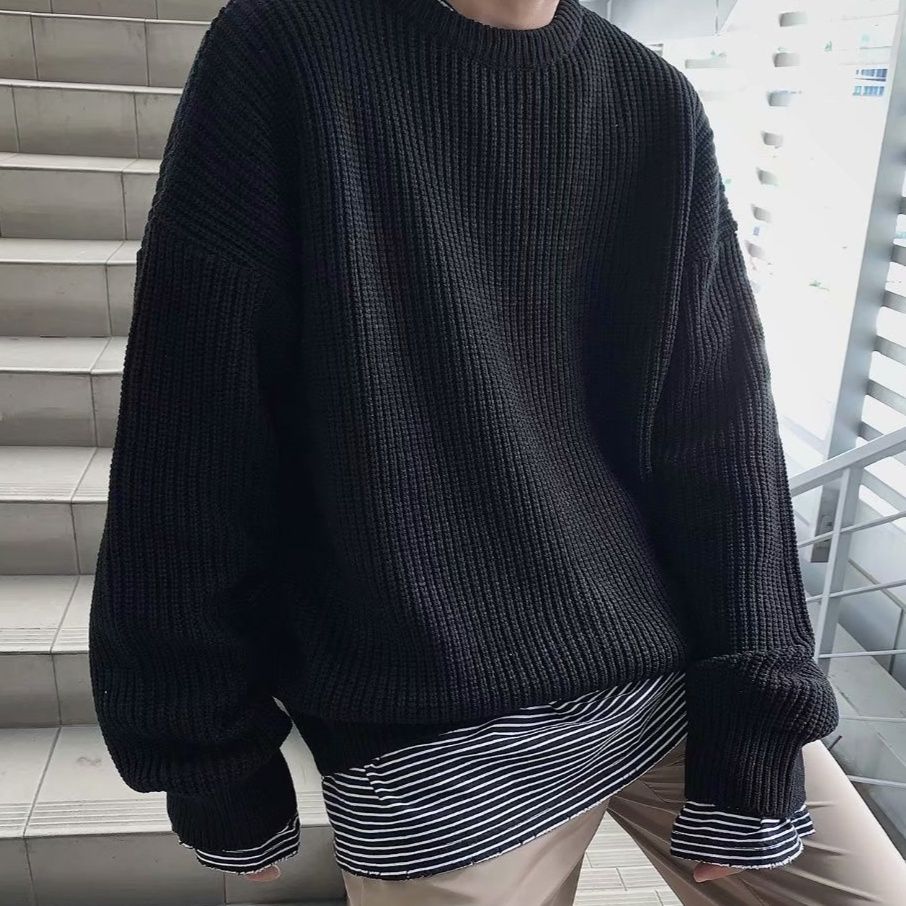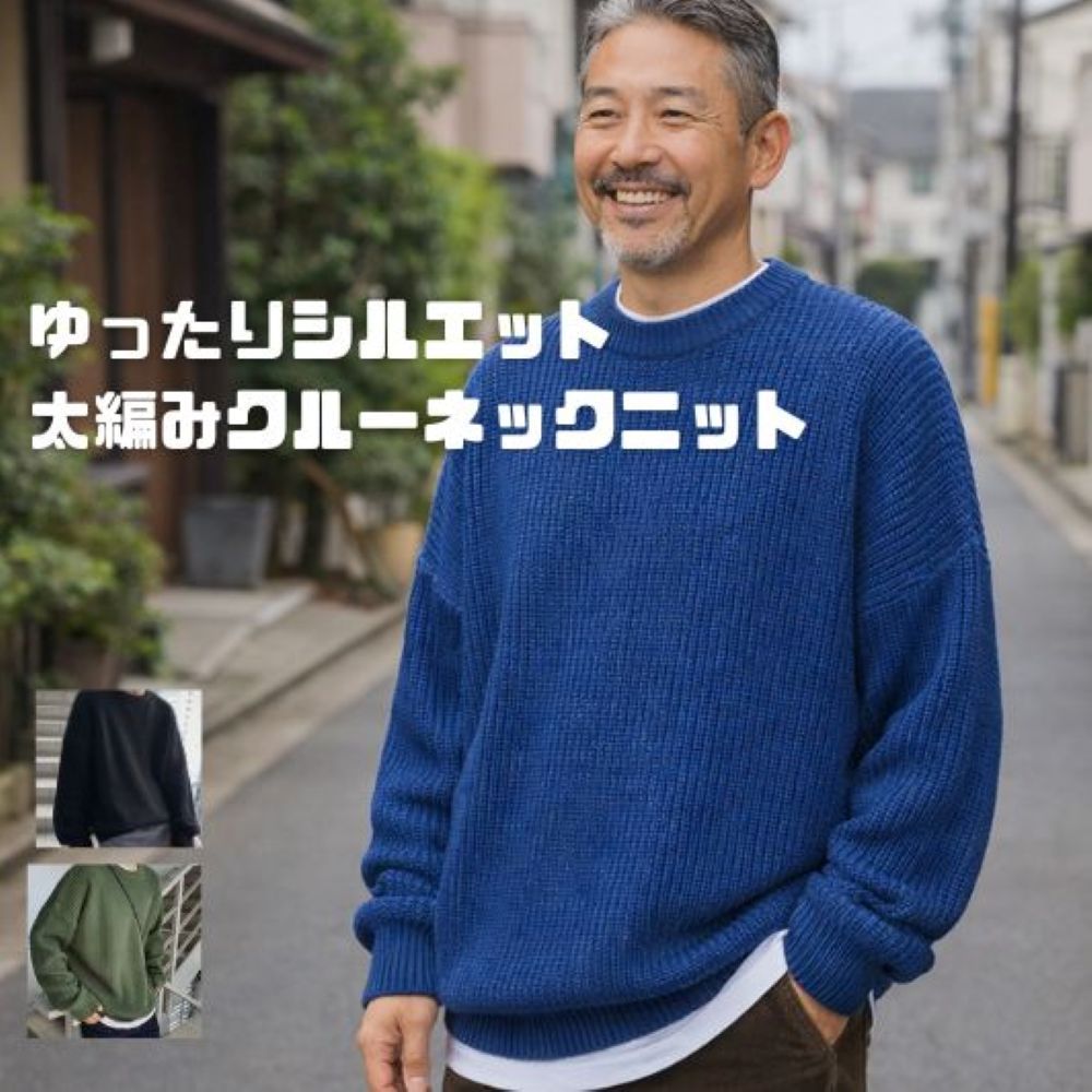 存在感のある太めの畝編みが特徴的なニットセーターです。