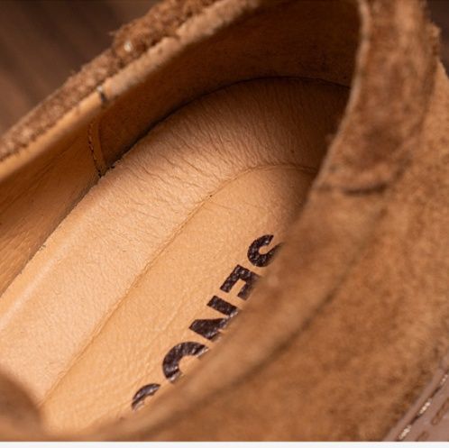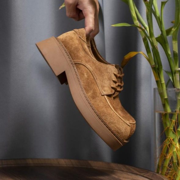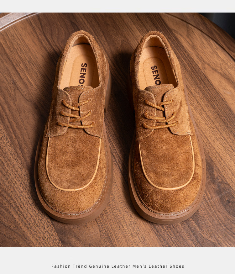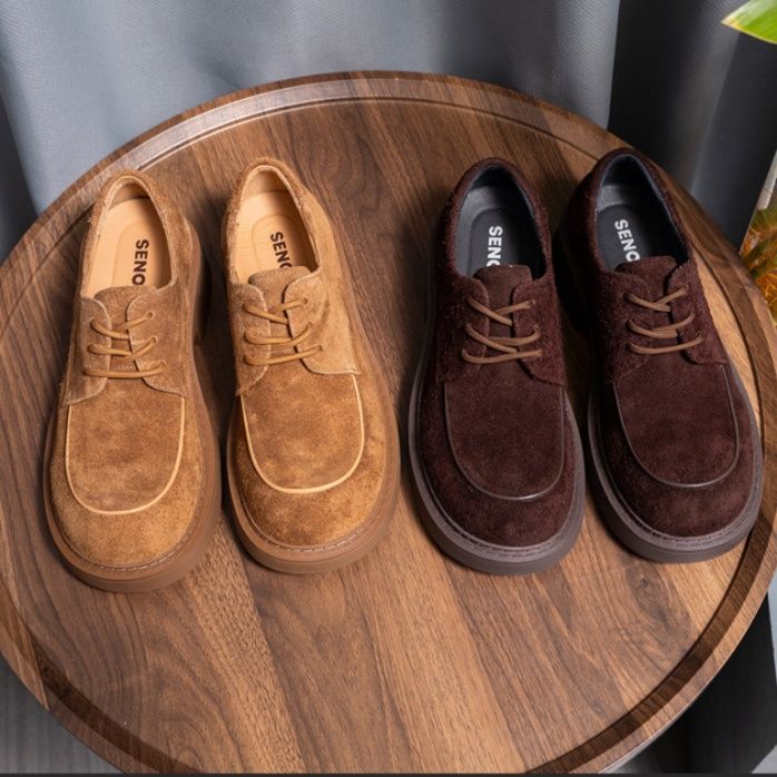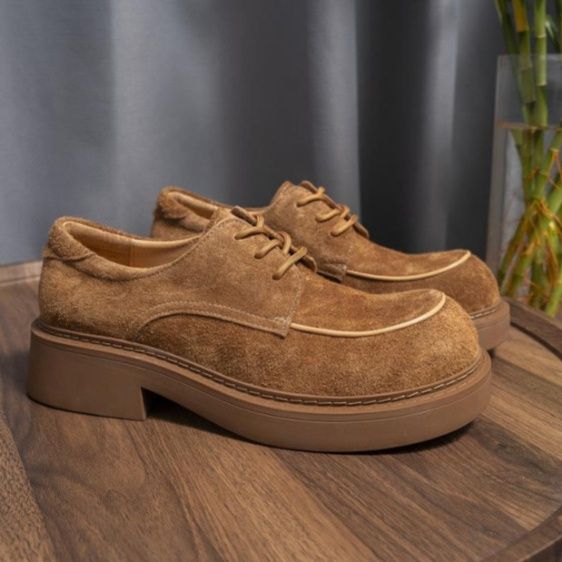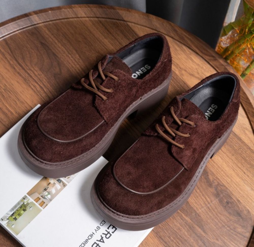 上質なスエード素材を使用した存在感のある厚底デザインの革靴です。