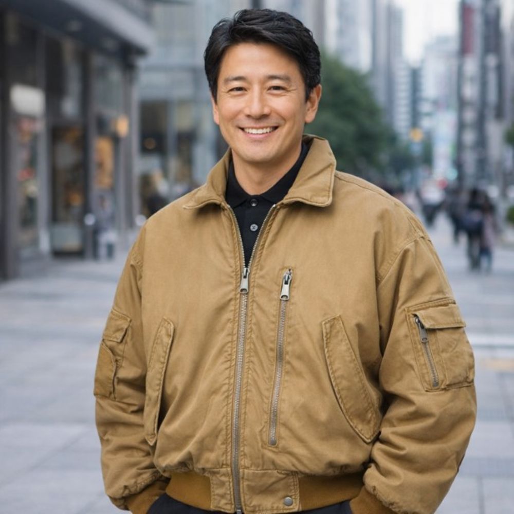 50代メンズファッションに最適なフライト風中綿入りアウターブルゾンジャケット。