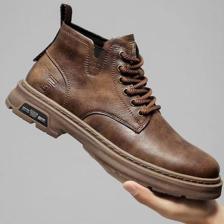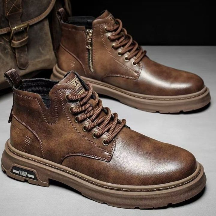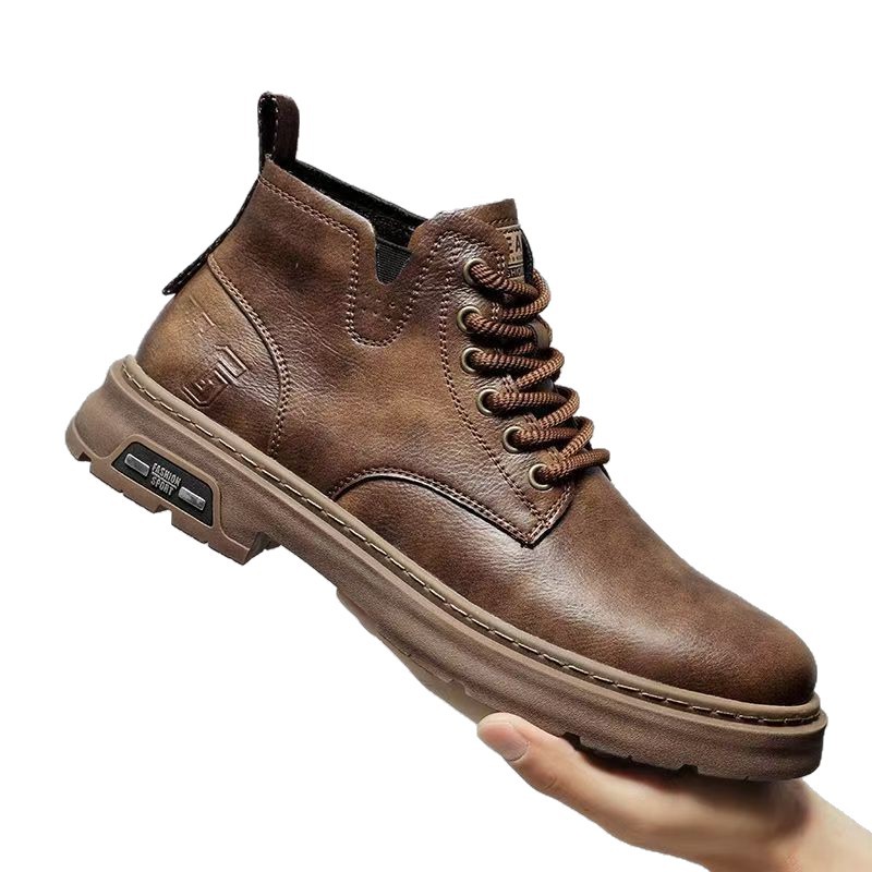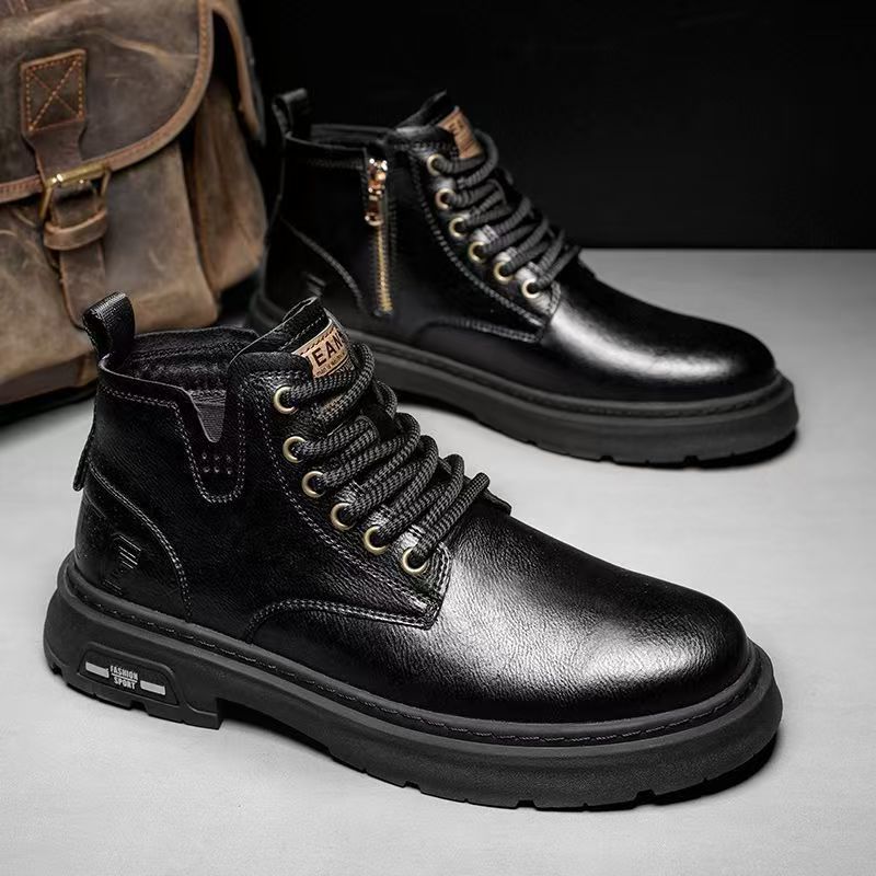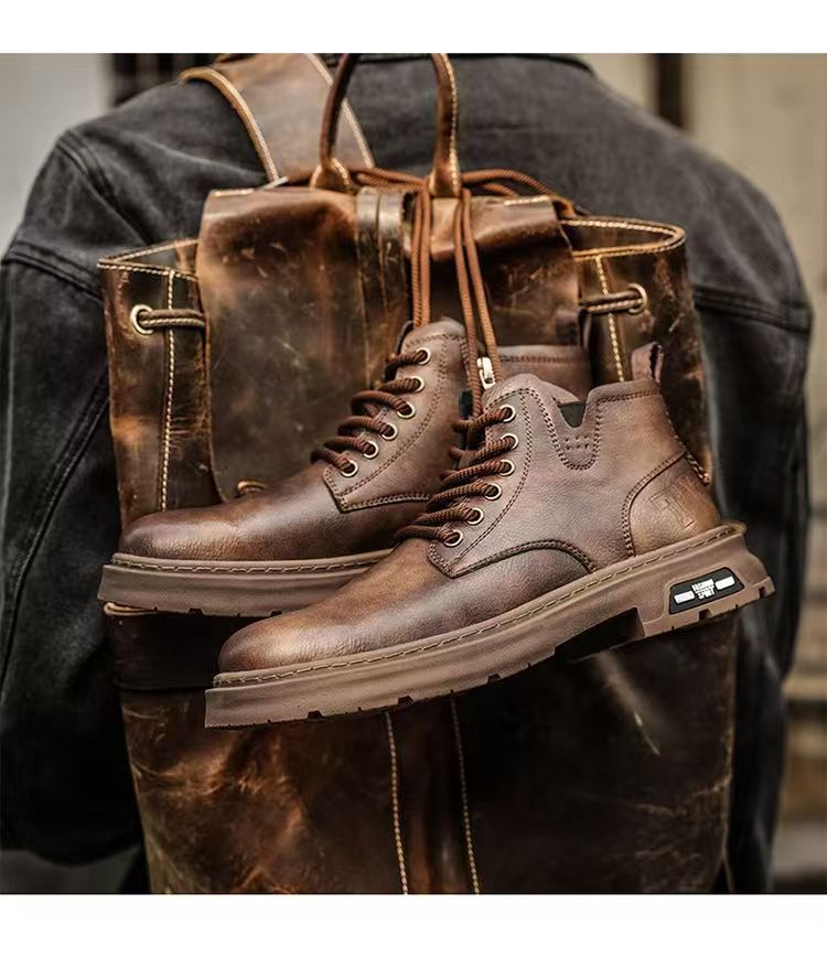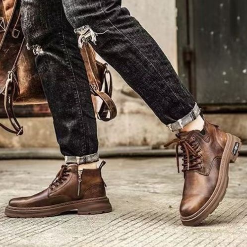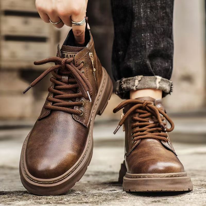 50代メンズファッションに最適な、上質な本革を使用した編み上げワークブーツです。