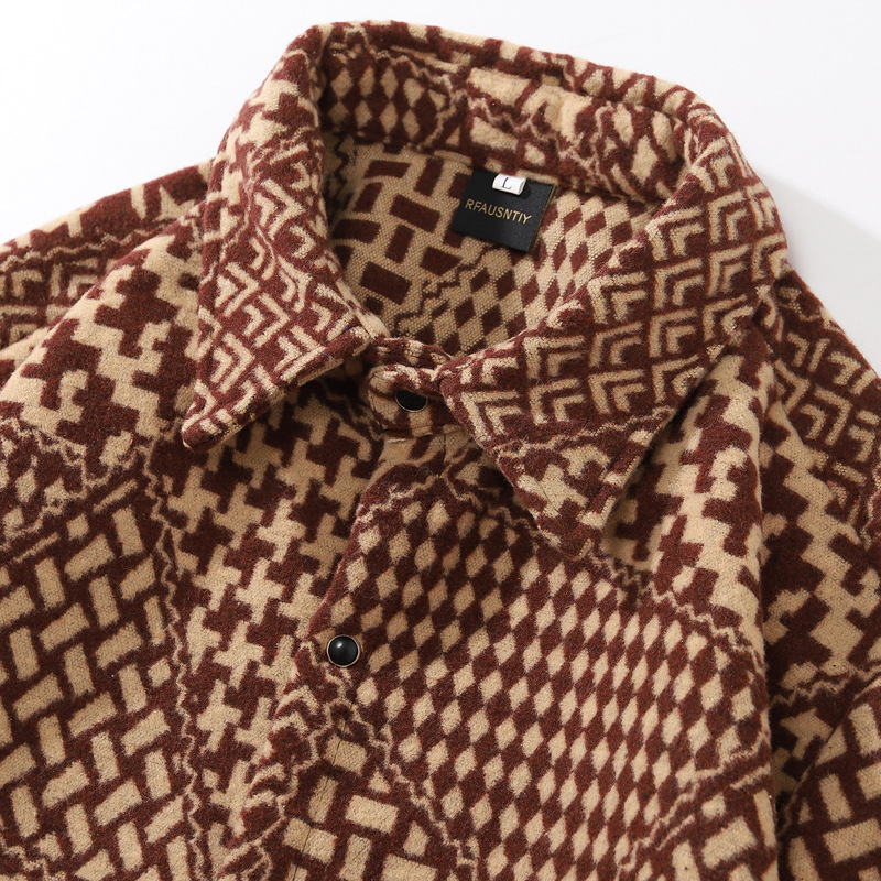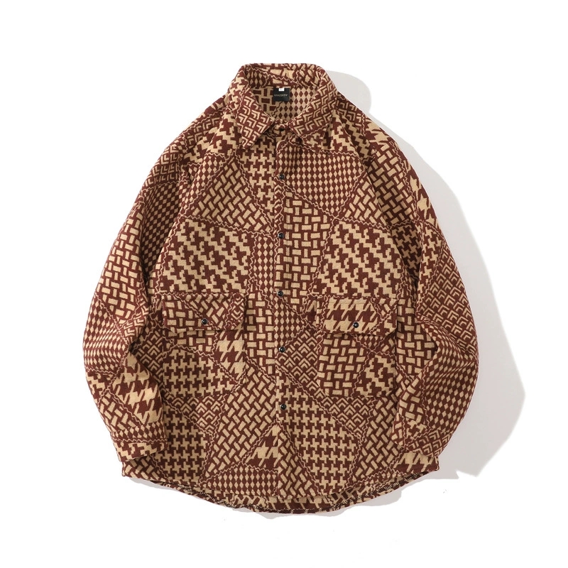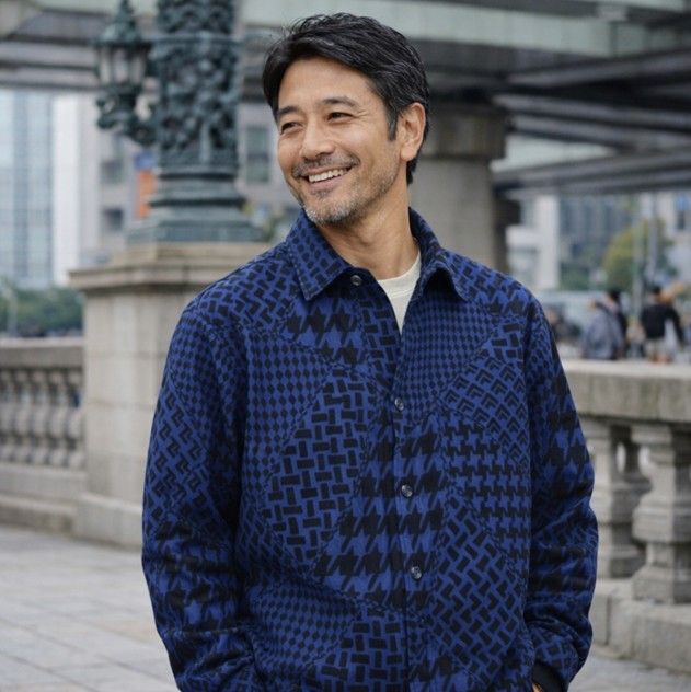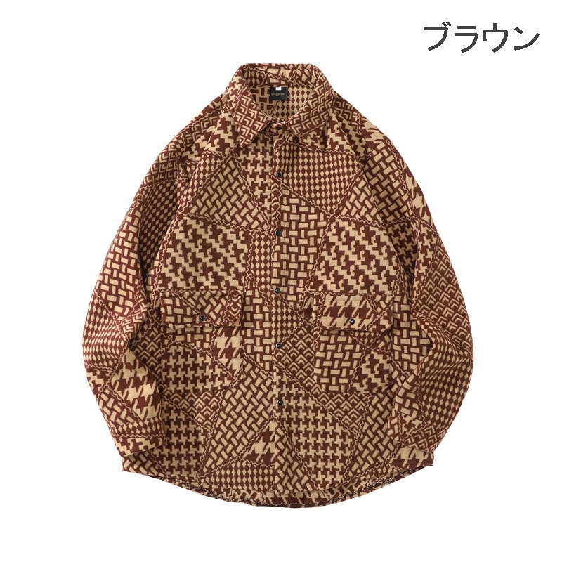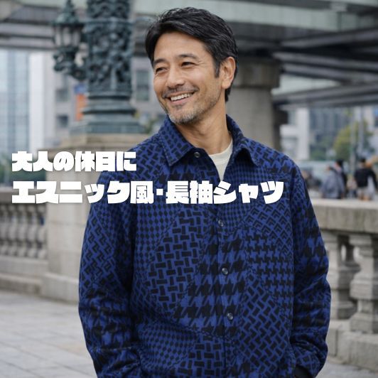 50代男性向けの洗練されたエスニック風の長袖トップスです。