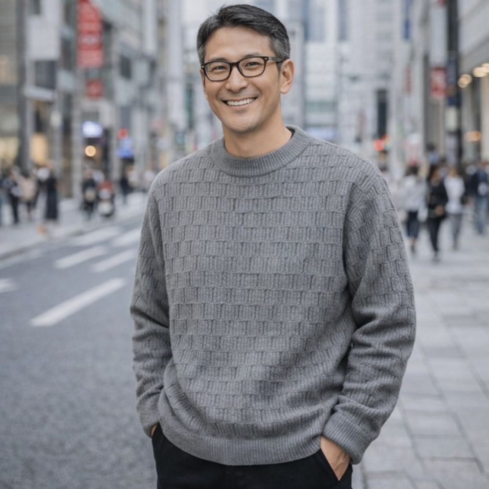 50代メンズファッションにぴったりの上品な長袖ニットセーター。