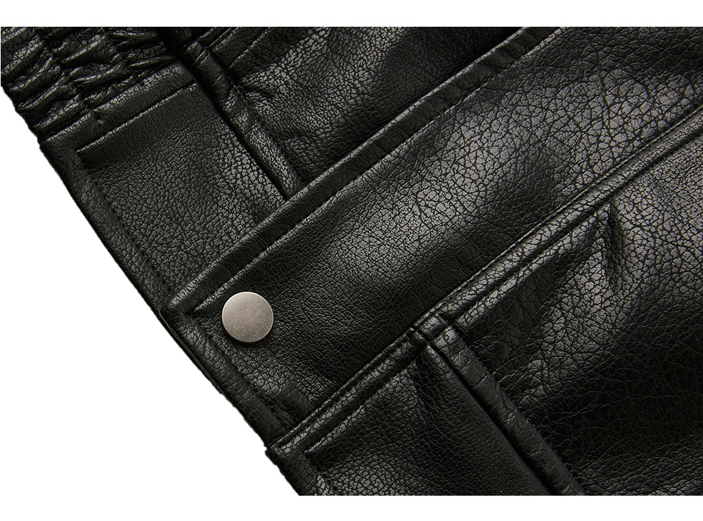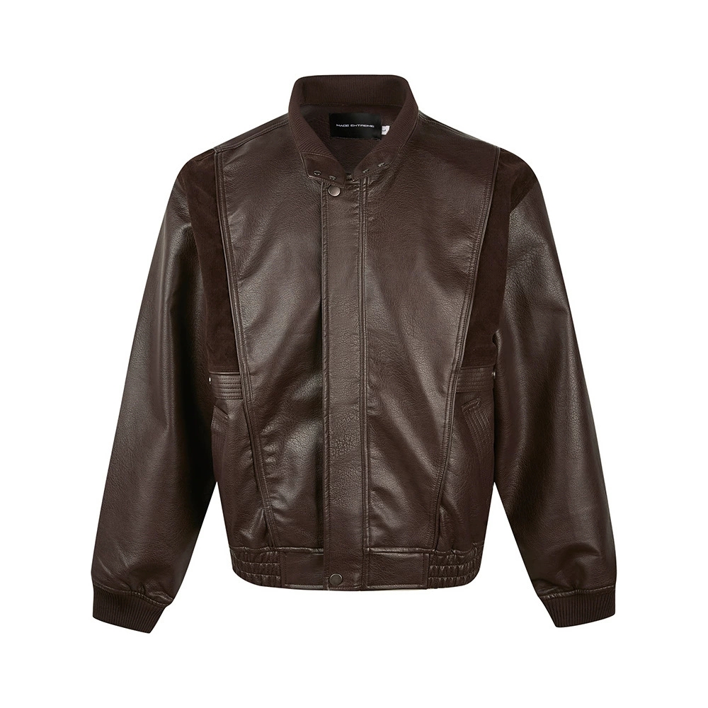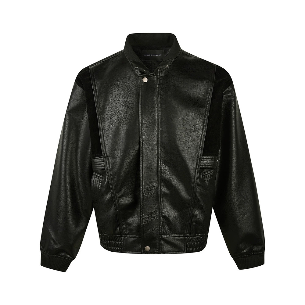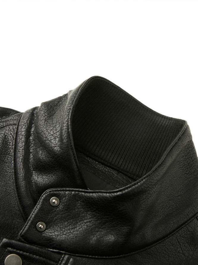 なめらかで上質な合成皮革素材が、本格的なレザージャケットの風合いを演出し洗練された印象を与えます。