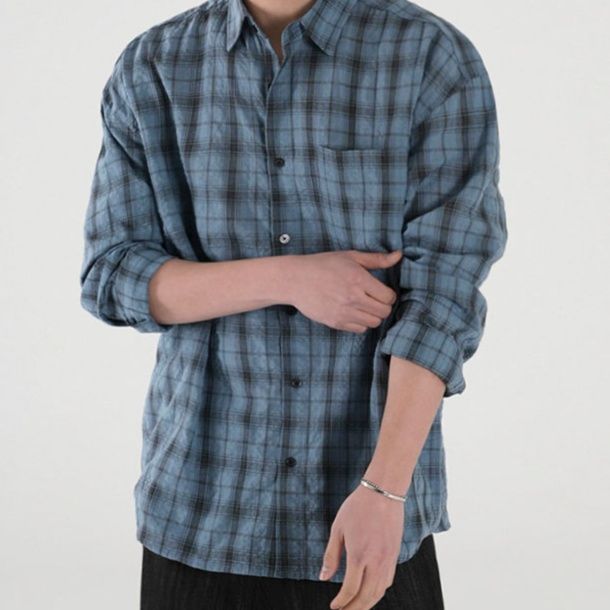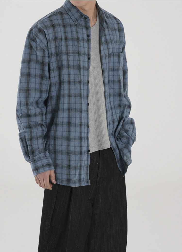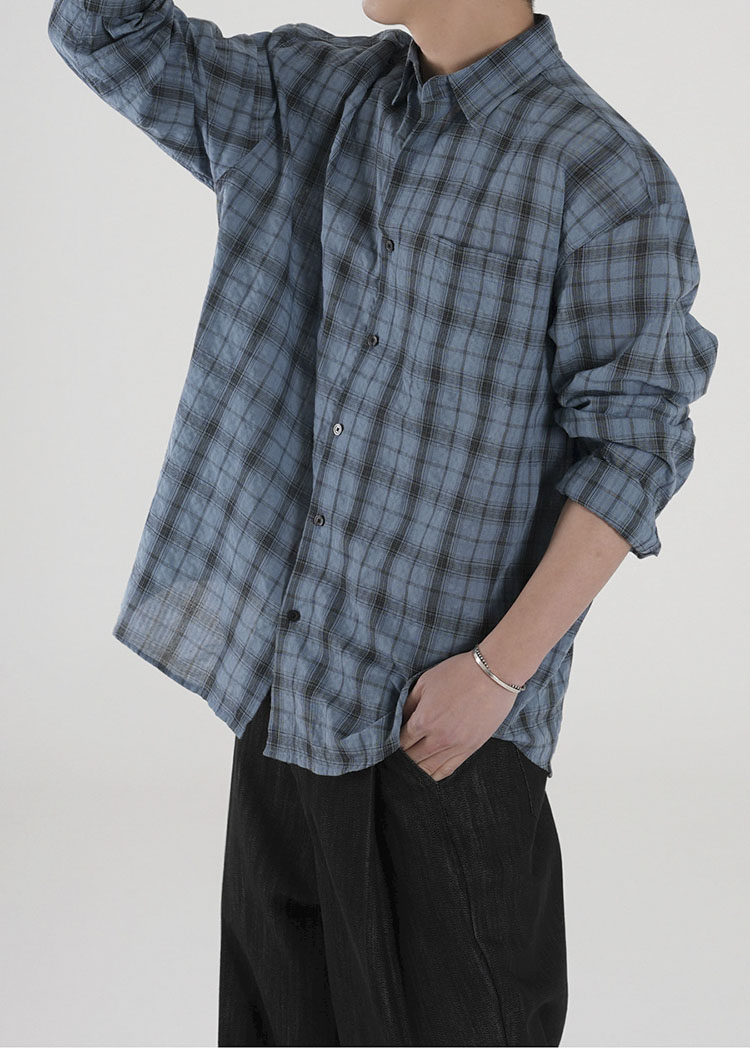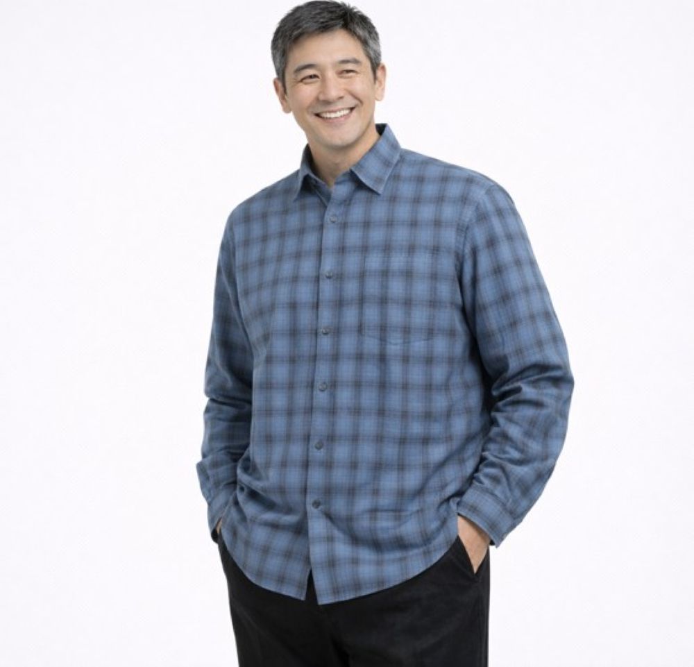 50代メンズファッションにぴったりの上品なチェック柄長袖シャツです。