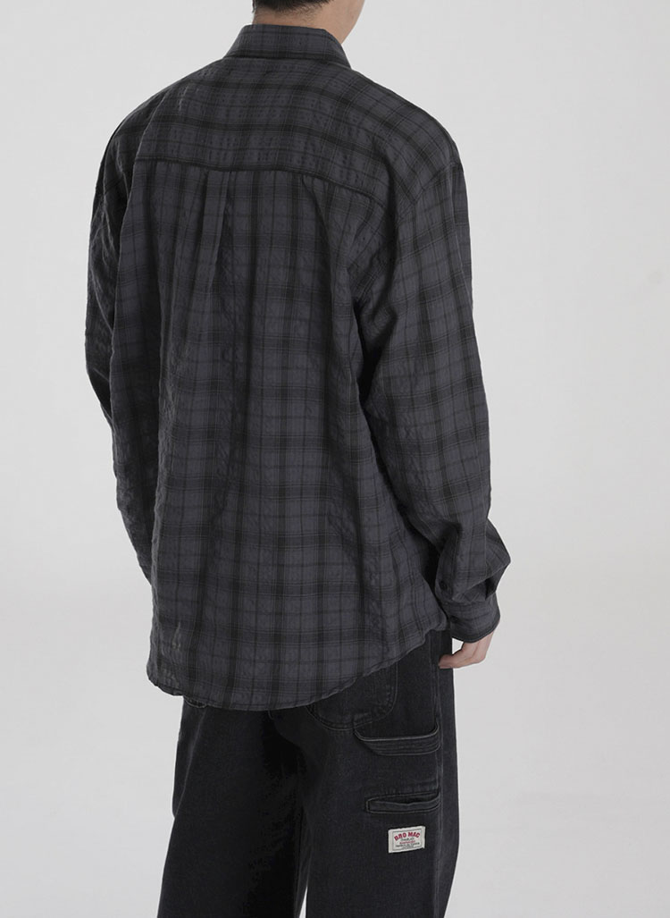 細かなチェック柄が洗練された雰囲気を演出し、カジュアルながらも品のある仕上がりに