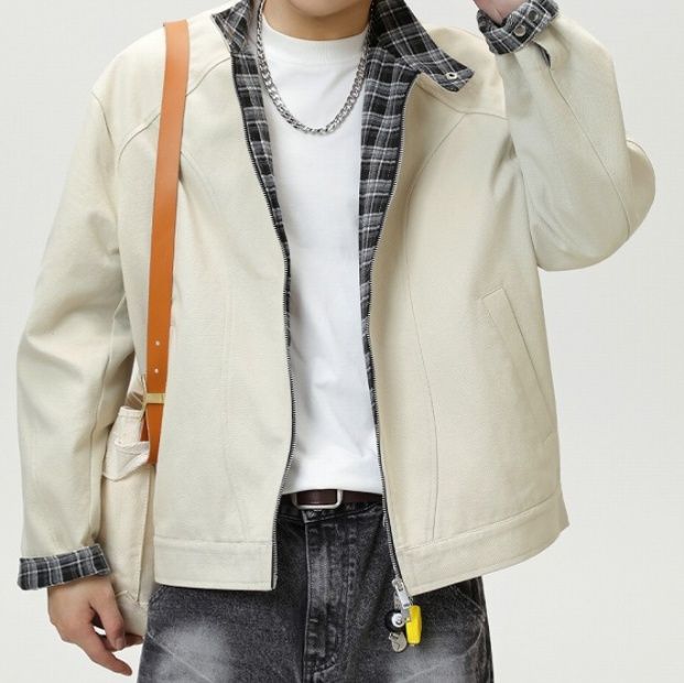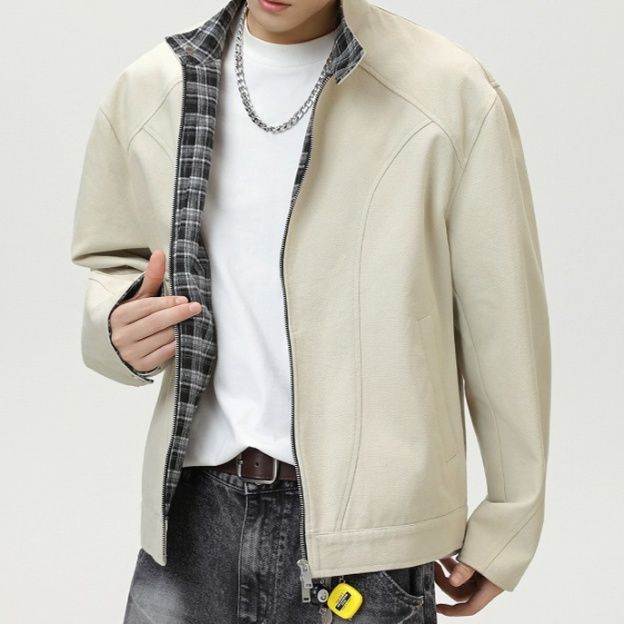 襟元と袖口から見えるチェック柄の裏地が、シンプルなデザインに遊び心をプラスして洗練された印象に