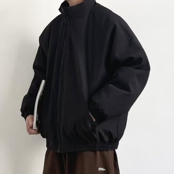 スタンドカラーが首元をしっかりガードし、裾と袖口のリブ仕様で風の侵入を防ぎます。
