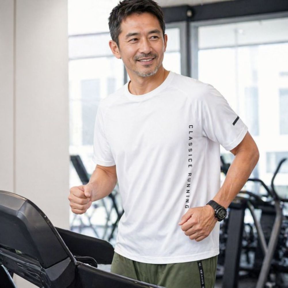 50代メンズファッションに最適な、洗練されたデザインの半袖Tシャツです。